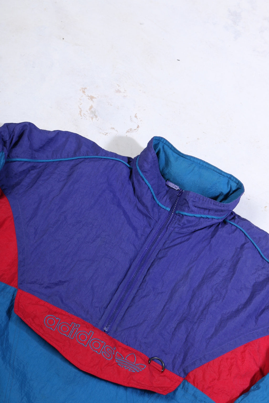 VINTAGE ADIDAS COLOURBLOCK 1/4 ZIP (X-LARGE) *SMALL MARKS ON FRONT