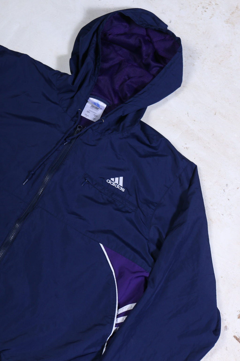 VINTAGE ADIDAS NAVY / PURPLE SPRAY JACKET (L)